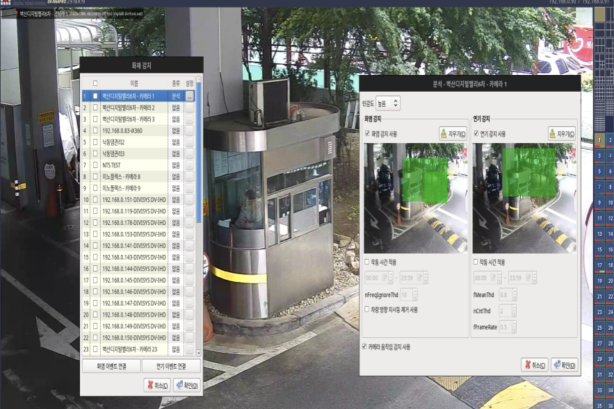 화재/연기 영상 감지 비교 지능형 영상 화재감지 지능형 영상 화재감지 카메라 병렬 동시 화재감지 감지율 화염, 연기 감지 및 미감지 영역 설정 가능 이벤트 발생 시 10~30초 내 감지하는 높은 감지율 모션 감지 센서 설정 가능 다양한 카메라 지원 비감지 시간대 설정 가능 아날로그, IP 등 지원 가능 화재감지 감도 설정 : 둔감, 보통, 민감 광범위 감지